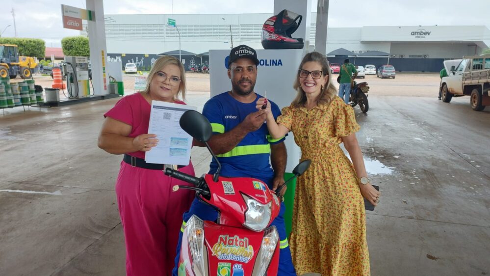 Os ganhadores: Daniel Coelho, Cliente da Preço Leve Confecções,Edina Soares de Oliveira, Cliente do Supermercado Piemon, Lucas Gonçalves Mafort, Cliente do Supermercado Piemon e Hélio Sandro Souza Carvalho, Cliente do Auto Posto Pimenta Bueno, haviam sido contemplados no sorteio realizado no último dia 31 de dezembro de 2022, durante o Réveillon dos Sonhos na Praça dos Pioneiros em Pimenta Bueno e nesta manhã, receberam diretamente nas empresas de onde ganharam os QR codes que geraram os cupons sorteados, das mãos do Presidente e da Secretária Executiva da ACIPB e CDL, em conjunto com os representantes das referidas empresas as chaves de suas motos, para já sairem acelerando pela cidade.